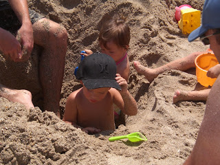 So our best buds the Robisons invited us to the beach. Justin dug this huge hole that the kids absolutely loved. They eventually all 3 got in and it was pretty cute!